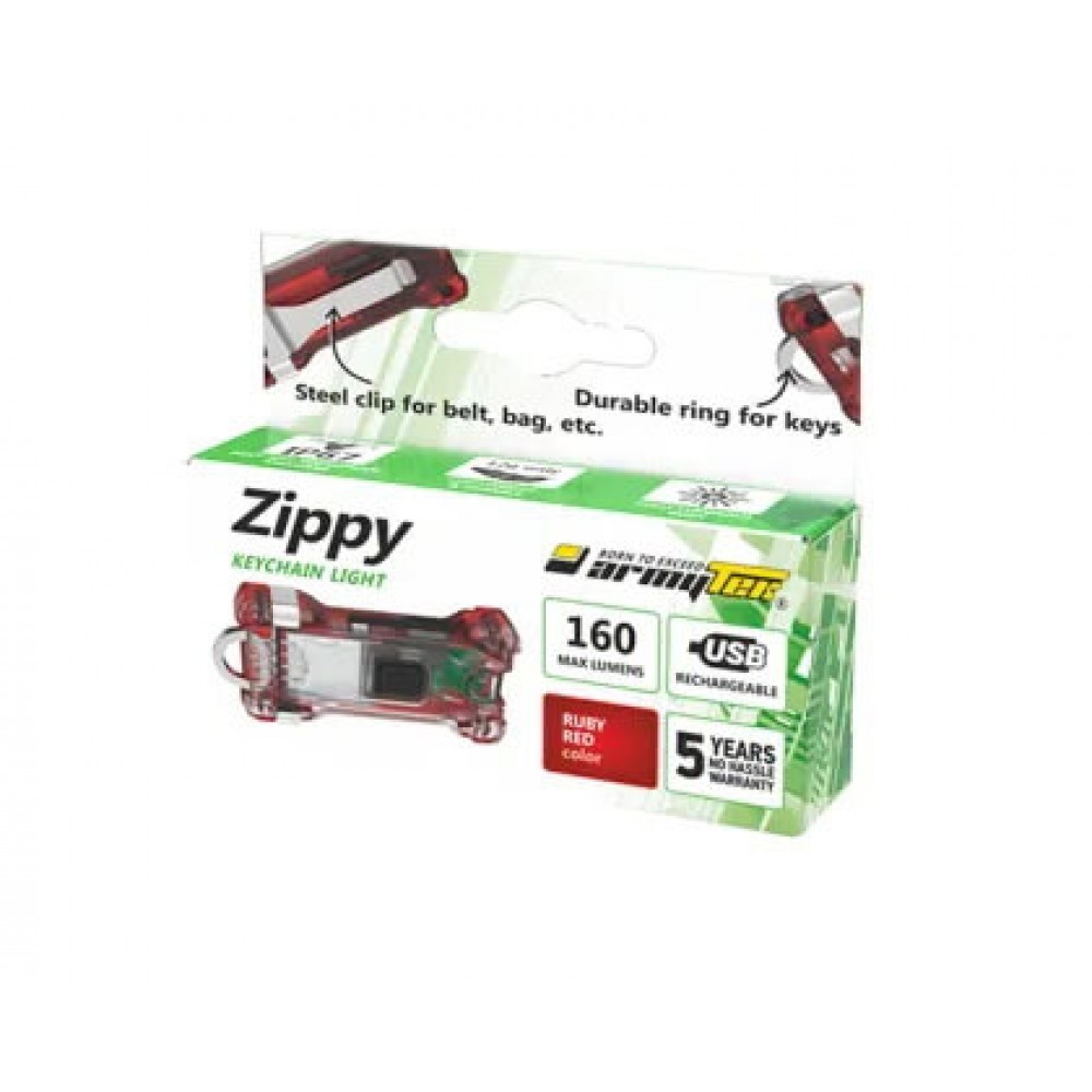 - Armytek Zippy (Red Ruby) предоставляет высокую яркость света в компактном исполнении, что делает его идеальным для повседневного использования и аварийного освещения.